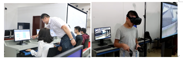 •  教师指导学生学习虚拟仿真软件       学生通过虚拟现实技术进行沉浸式体验
