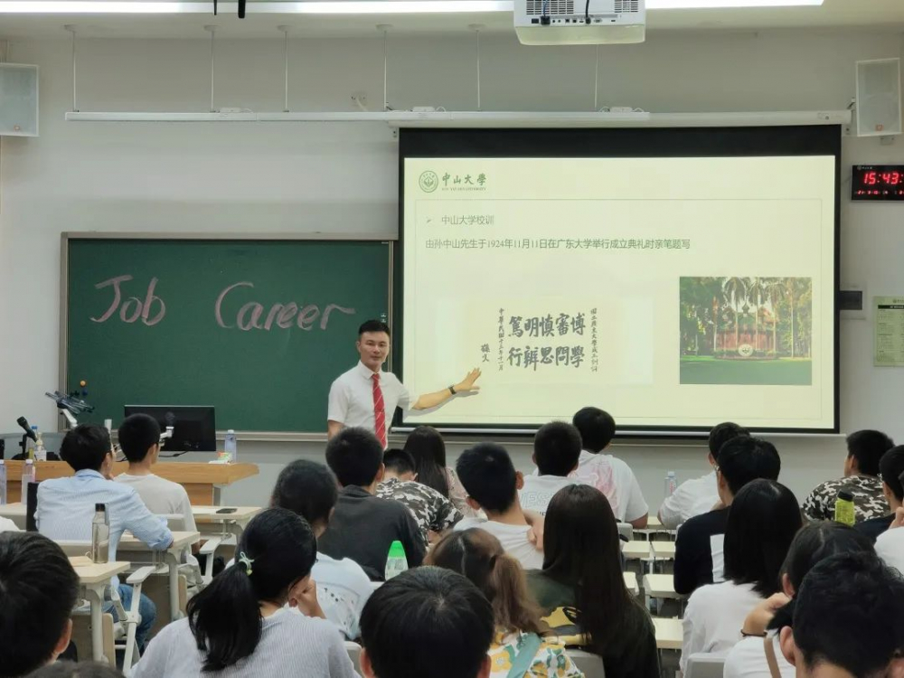 宣讲会由副院长王诗忠教授主讲,王院长先从学校的历史和文化开始了介绍,介绍内容包括了学校的创办简史、校训校徽校歌、当前学校的状况等。