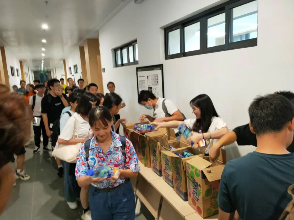 宣讲会后,老师们为2021级新生们派发了清凉饮料,在慰问和关心的同时,鼓励同学们在下来的时间继续努力参加新生入学军训活动。
