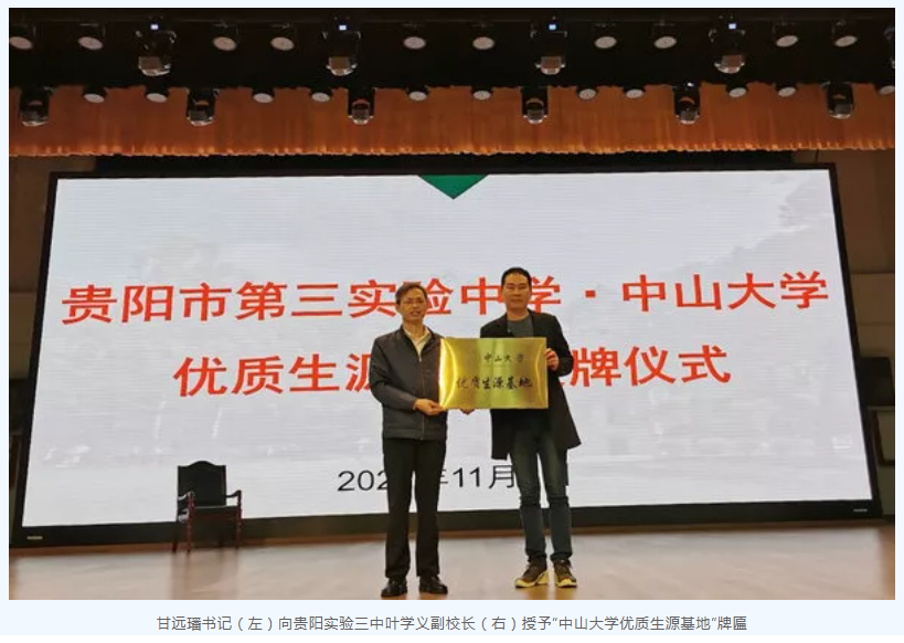 我院党委书记甘远璠一行赴贵州省贵阳市第三实验中学开展yl1111永利集团优质生源基地授牌仪式暨招生宣讲活动