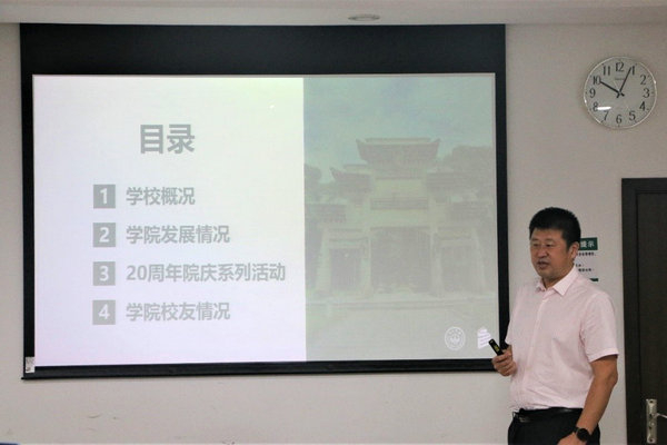 随后,孙连鹏院长围绕历史沿革、发展格局、办学理念、学科发展等方面概述了学校的发展情况,就学院学科发展历程、管理架构、党建工作、师资力量、科研成果、产学研合作成效等方面介绍了学院的发展情况,向校友们梳理了学院20周年院庆系列活动已有进展及下一步活动安排。孙连鹏院长还重点分析了学院校友工作现状,并提出了推进校友工作的几点思路。他表示,希望校友们多“回家”看看,一如既往地关心和关注学校学院的发展,同时,学院也将进一步加强校友工作,增强校友归属感,强化学院凝聚力。