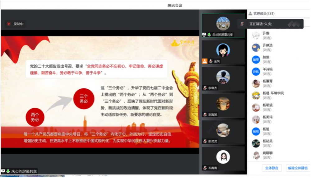 2022年12月26日上午,马克思主义学院朱贞副教授受邀为我院师生做了题为“五个牢牢把握——学习贯彻党的二十大精神”专题辅导报告。学院党委委员、党委理论学习中心组成员、各党支部党员、发展对象、积极分子等共近300余人参会。此次报告会以线上腾讯会议形式召开,由学院党委副书记彭灵灵主持。