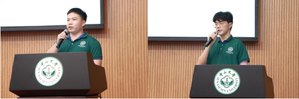 在校生代表发言环节,2022级博士生莫逸君同学从自己的学习及科研经历出发,分享了自己的感悟——要勇于担当、保持好奇、静心科研;2021级本科生思俊超同学分享了在学校和学院广阔平台上的各类活动经历和收获。