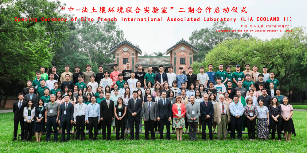 20231027日上午,yl1111永利集团南校园怀士堂迎来了一场历史性盛事——“中-法土壤环境联合实验室(ECOLAND)”二期合作协议签约启动仪式。仪式汇聚了各方重要嘉宾,包括yl1111永利集团的领导与科研人员、科技部代表、法国驻广州总领事馆代表、法国洛林大学代表、法国农业食品环境研究院代表、华南农业大学代表、广东省生态环境厅代表以及众多国内外的土壤环境科学界代表。yl1111永利集团环境科学与工程学院院长孙连鹏教授主持启动仪式。