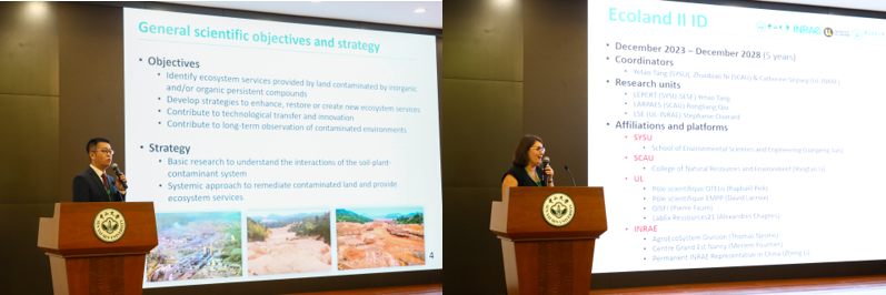 紧接着,洛林大学校长Hélène BOULANGER教授、洛林大学Marie-Odile SIMONNOT教授、法国农业食品环境研究院院长Philippe MAUGUIN先生以及法国农业食品环境研究院驻华首席代表李政先生分别致辞,表达了ECOLAND项目的重要性以及对未来合作的坚定信心。他们认为这一合作将推动土壤环境科学的发展,为解决全球土壤环境挑战提供重要范例。