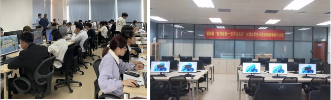 合影结束后,参赛者们在四个赛场进行环境仿真操作、环境设计展示答辩,开展理论知识、实际应用和创新能力等综合能力的比拼。