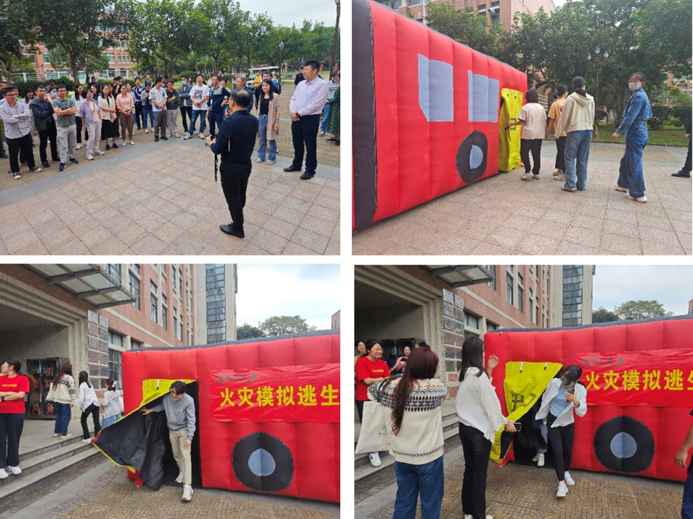 根据今年消防安全宣传月“预防为主、生命至上”的活动主题,为进一步增强我院师生员工的消防安全意识,有效提高消防安全技能,11月30日下午,我院邀请学校保卫处举行专场消防技能培训与演练。活动东校园环境大楼前广场开展,分为消防疏散逃生舱体验和消防器械实操培训两个部分,学院百余名师生共同参与。
