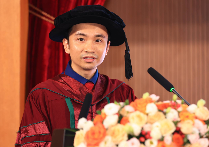 随后,黄裕熙副教授作为导师代表向全体毕业生发言。这一届毕业生克服重重困难完成了学业,在挑战中迅速成长,大家的青春都是独一无二的。在大家即将开辟自己新的人生征程之时,与大家共勉:一是勇于担当、胸怀家国;二是坚持学习、融会贯通;三是坚韧不拔、从容淡定。在百年校庆之际的毕业大会更是意义非凡,希望同学们作为骄傲的中大环境人,带着百年校庆的荣耀,为国家和社会贡献力量,实现人生抱负。