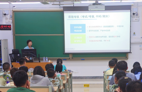 829日晚上,在进行了军训第一天训练后,学院副院长王诗忠教授、党委彭灵灵副书记、教务员张迪老师为新生们组织了第二次新生教育会。彭灵灵副书记代表学院再次欢迎同学们的到来,希望同学们积极参加军训,尽快适应新环境,融入大学的学习和生活。张迪老师从入学注册到毕业学位,为同学们介绍了学校和学院教务方面各类课程修读和专业学习的信息,并强调了教务的规定和纪律。