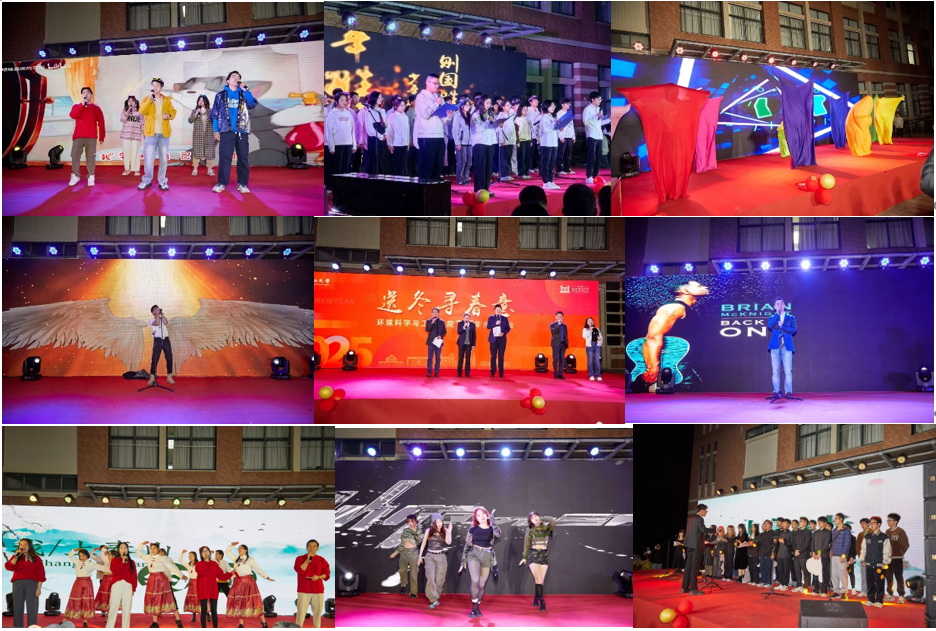 环境科学与工程学院元旦晚会于2024年12月28日晚上7点在我院大楼正门广场顺利举行。此次晚会以“送冬寻春意”为主题,环院师生欢聚一堂,带来了精彩纷呈的节目表演,共辞旧岁,喜迎新年。